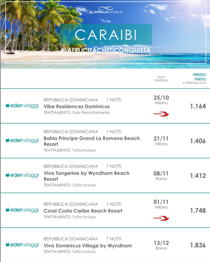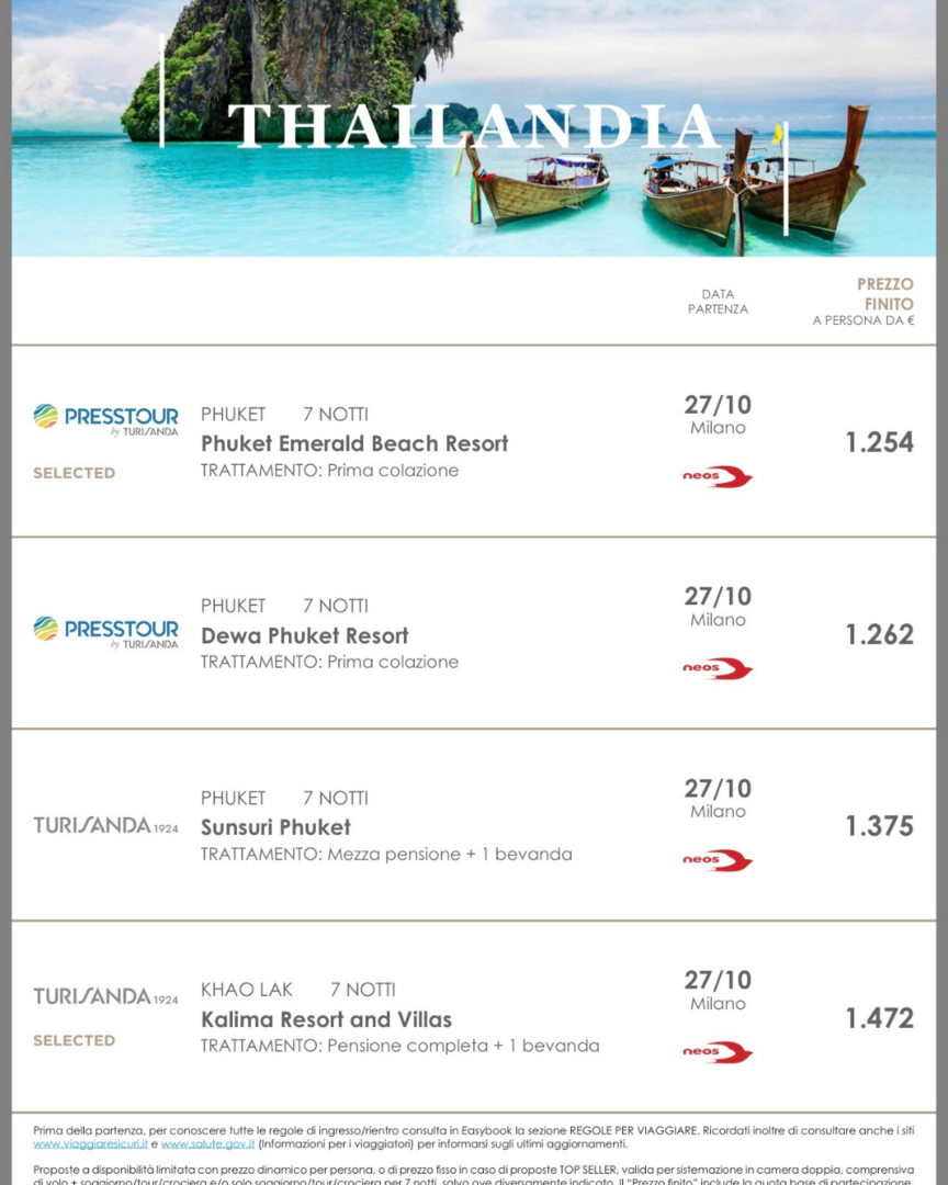 Cerchi l’occasione perfetta per partire? The Event Travel collabora con i più grandi Tour Operator italiani e i migliori corrispondenti internazionali per offrirti proposte e offerte di viaggio molto competitive. Una fuga al mare, un’avventura o un tour culturale, abbiamo la soluzione che fa per te!