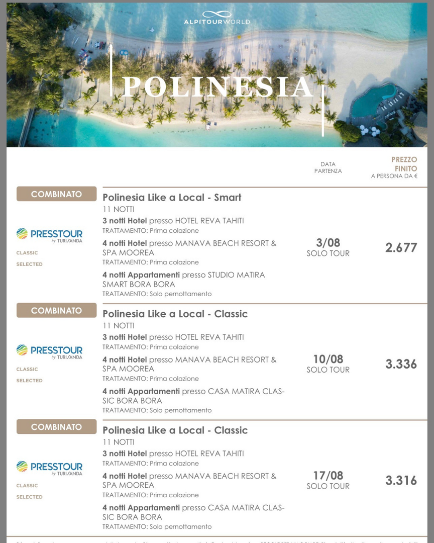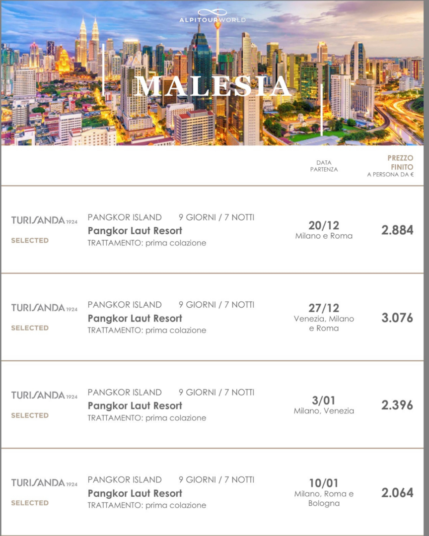Oltre alle nostre partenze di gruppo, troverai un’ampia selezione di pacchetti personalizzabili: scopri qui sotto la nostra vetrina con le offerte disponibili e preparati a vivere la tua prossima avventura con i viaggi firmati The Event Travel: